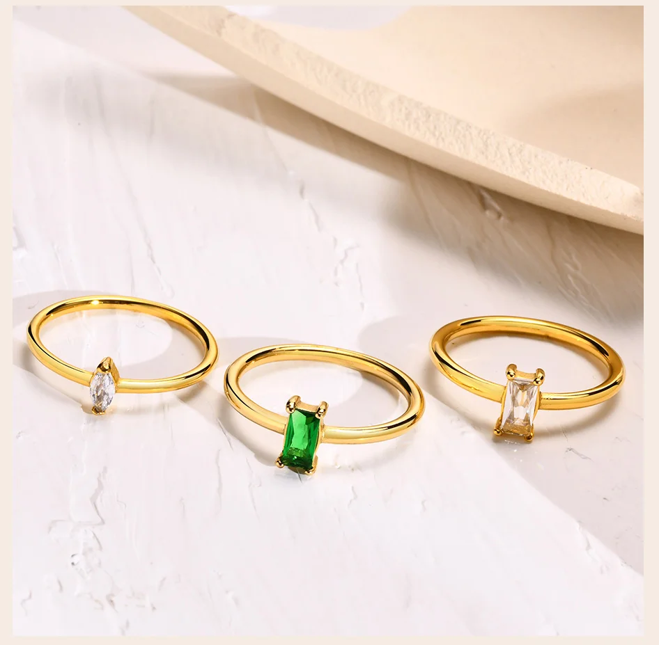 Delicate Stackable Thin Green Waterdrop Zircon Ring for Women Minimalist Finger Statement Jewelry
