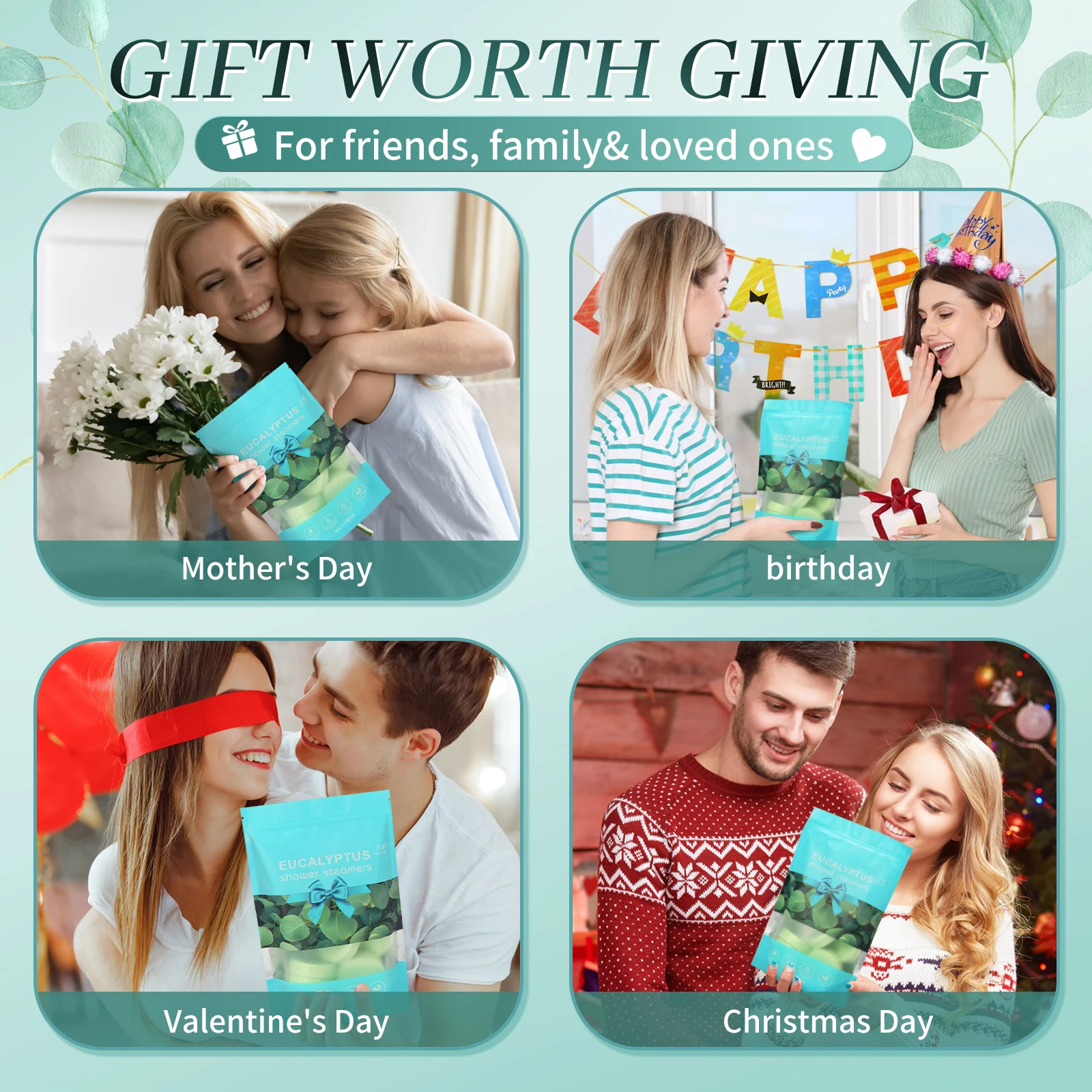 Relieve stress and fatigue: Use eucalyptus explosion aromatherapy to eliminate the stress and fatigue of the day. When they dissolve, they release potent eucalyptus essential oil, soothing emotions and relieving tension. Whether you're at home or on the go, this steam shower can help you immerse yourself in deep relaxation and tranquility, ensuring a peaceful night's sleep.