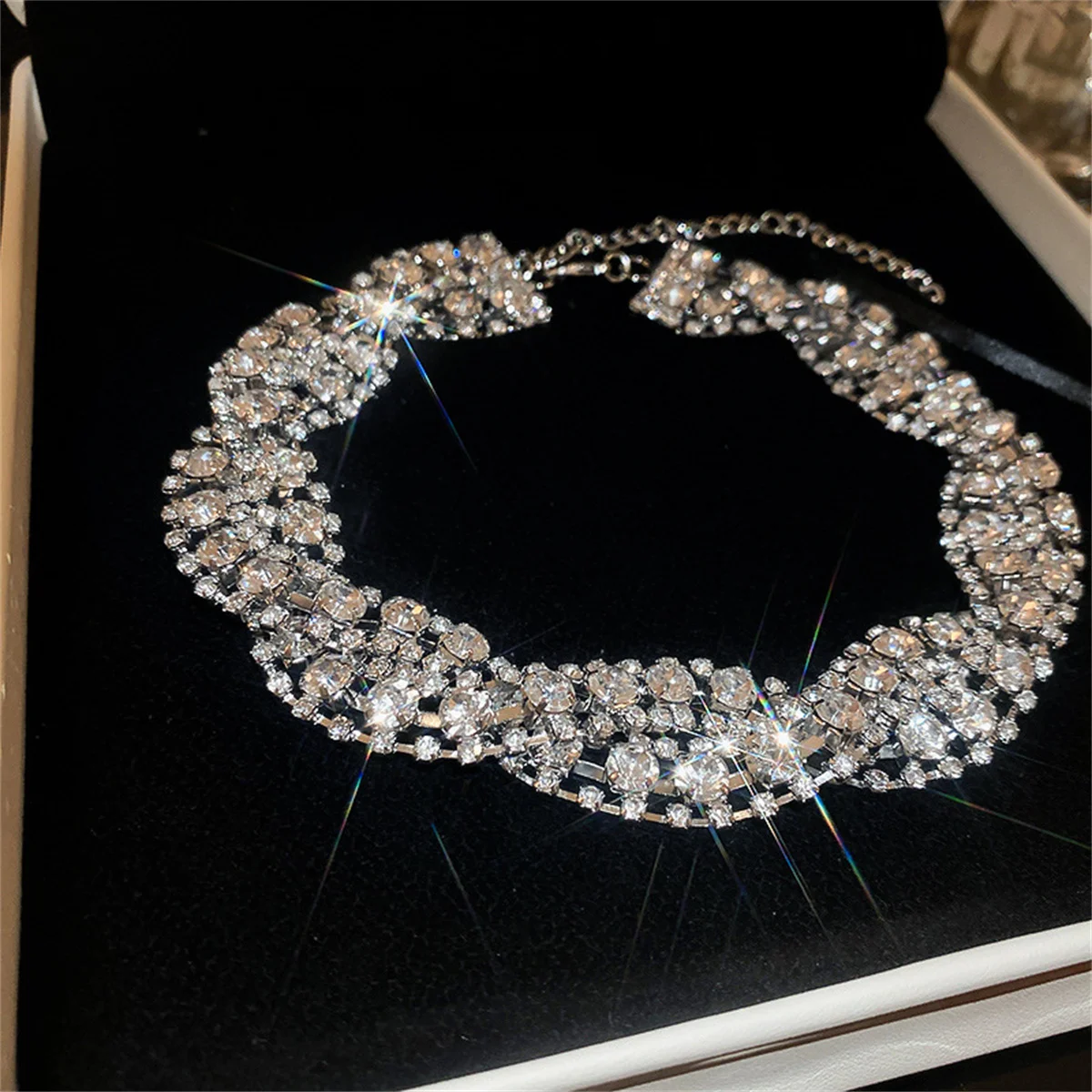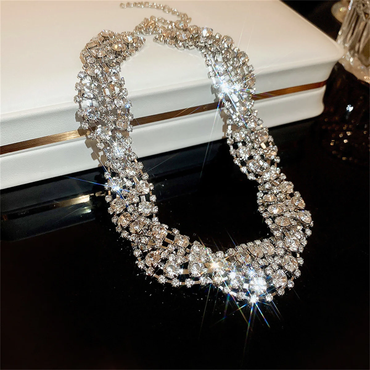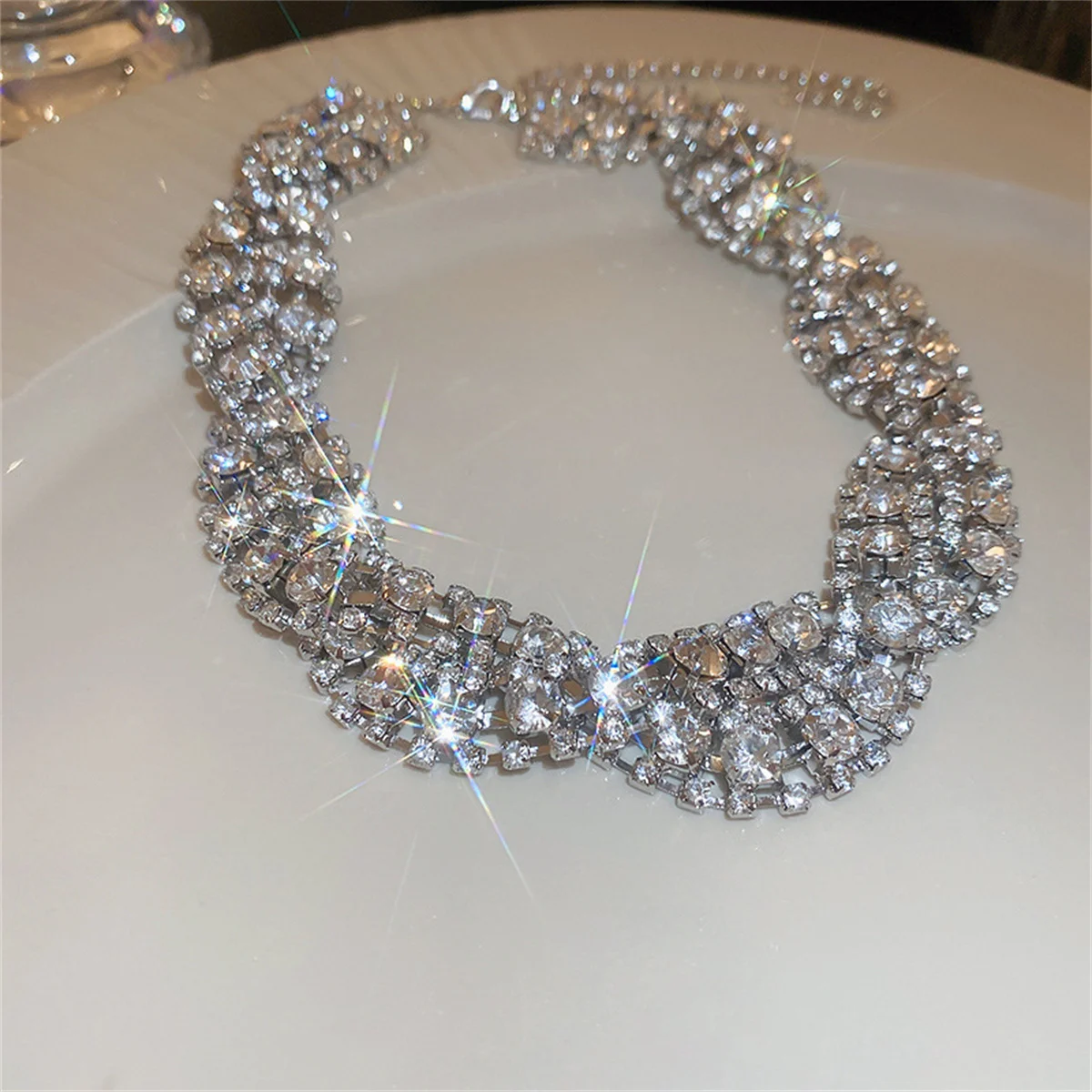 FYUAN Fashion Silver Color Geometric Crystal Choker Necklaces Screw Rhinestone Necklaces for Women Party Statement Jewelry