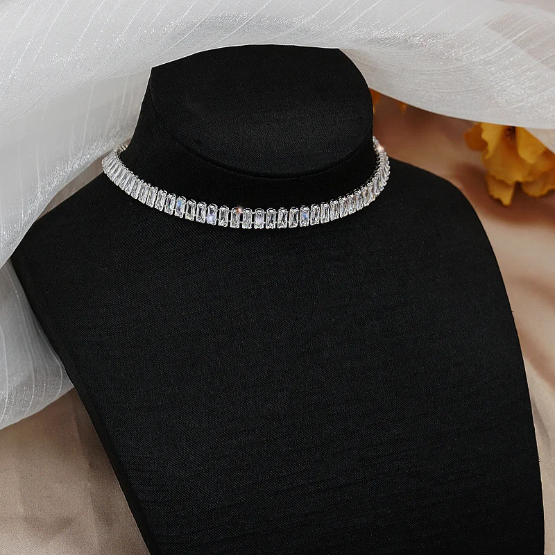 FYUAN Simple Zircon Crystal Choker Necklaces for Women Geometric Chain Necklaces Statement Jewelry