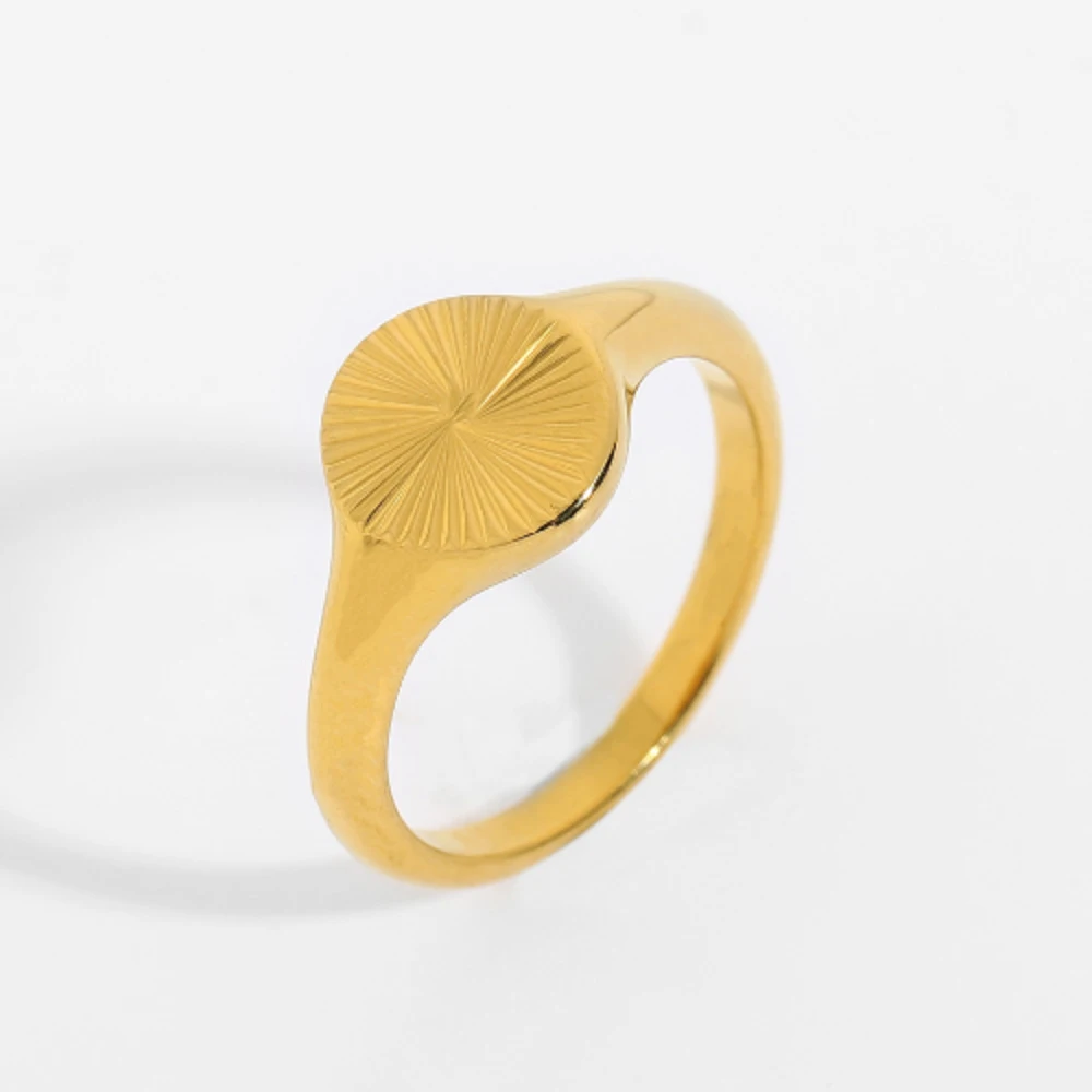 High Quality Carve Wave Rings For Women Minimalist Dainty Rays Texture Circle Ring Stainless Steel Signet Chunky Dome Ring