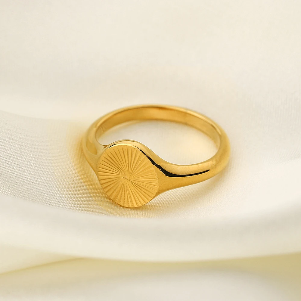 High Quality Carve Wave Rings For Women Minimalist Dainty Rays Texture Circle Ring Stainless Steel Signet Chunky Dome Ring