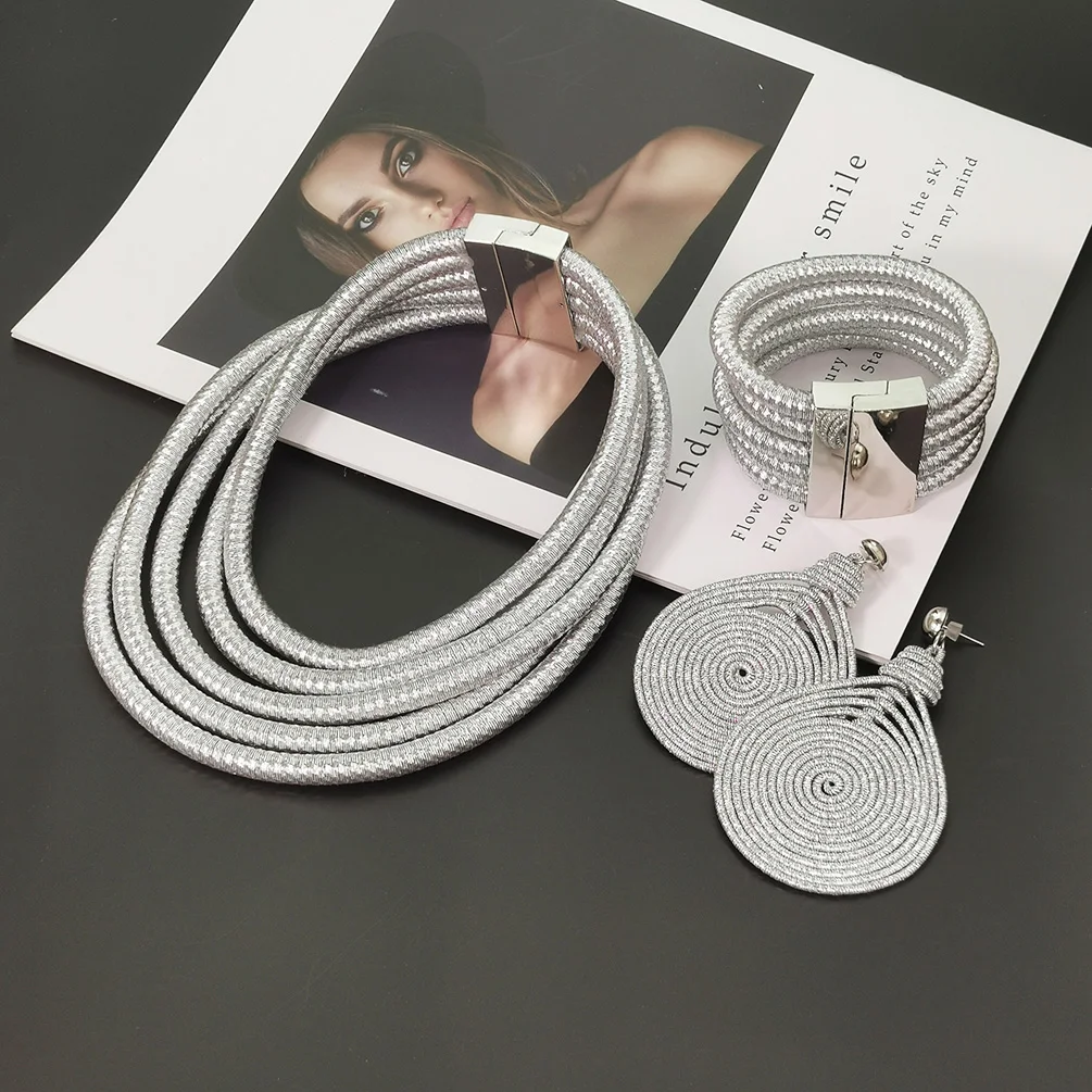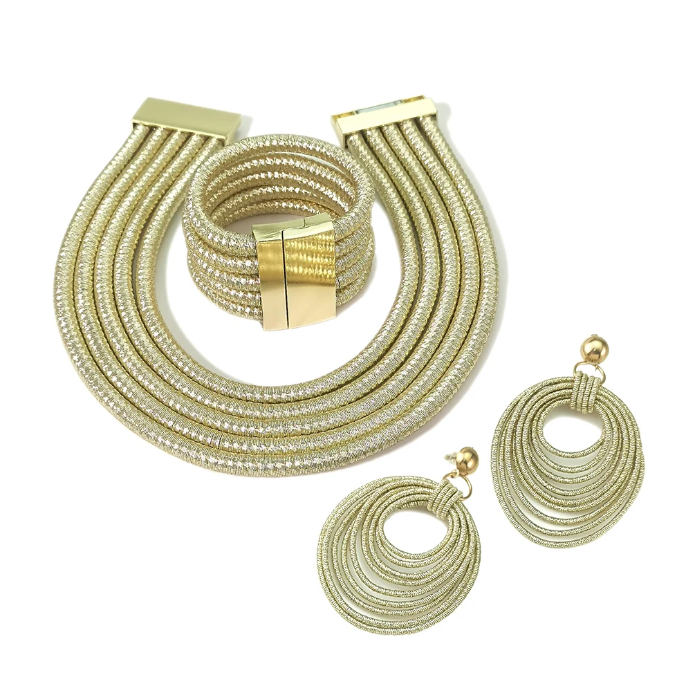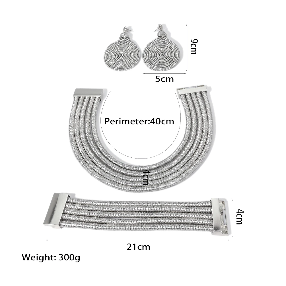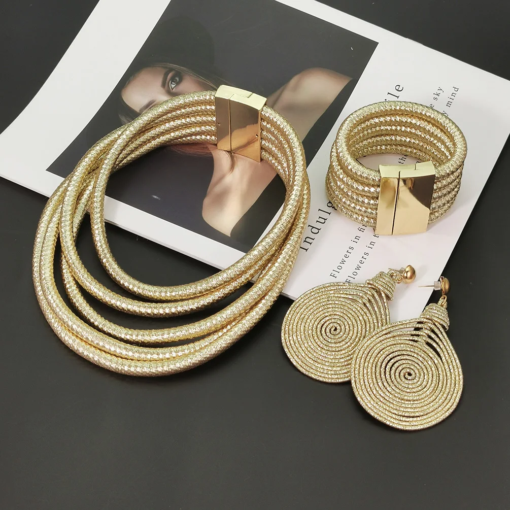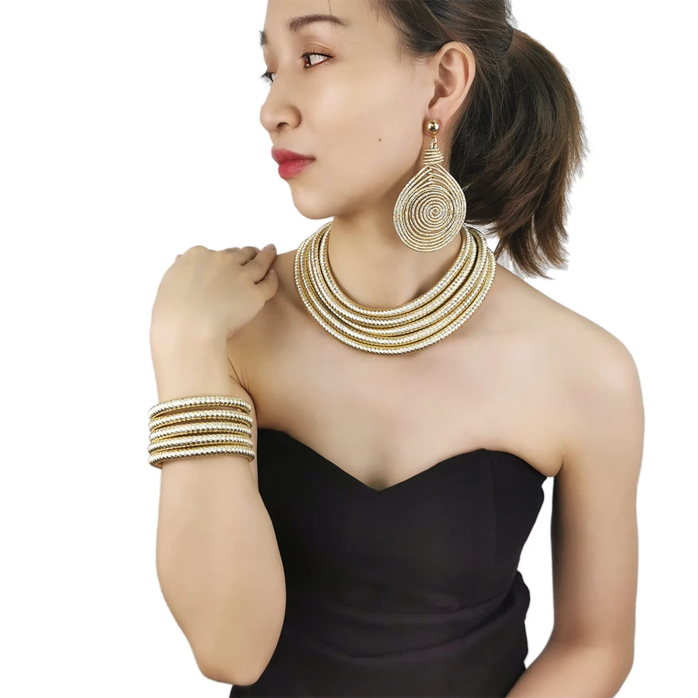 KDLUN African Jewelry Sets Multi-layers Chain Bracelets Earrings Choker Necklaces Statement Fashion Set For Women Indian