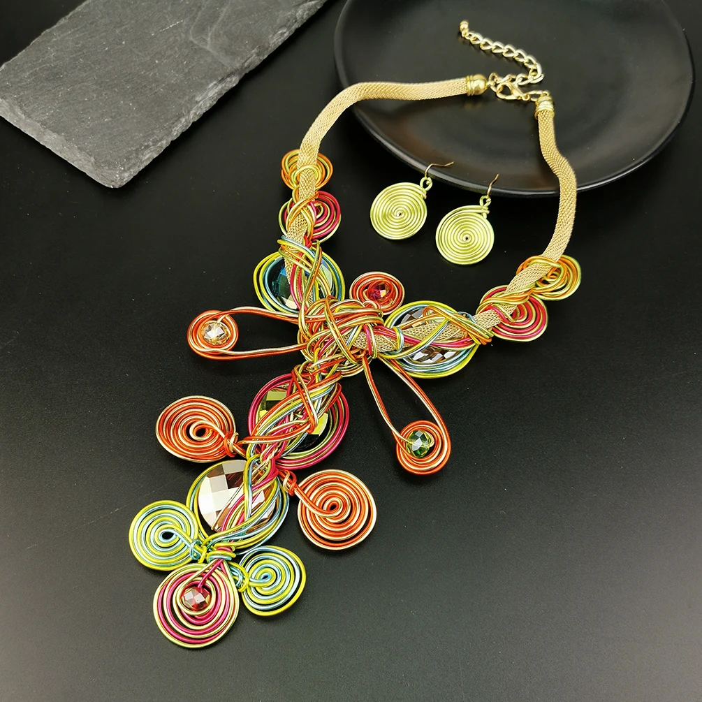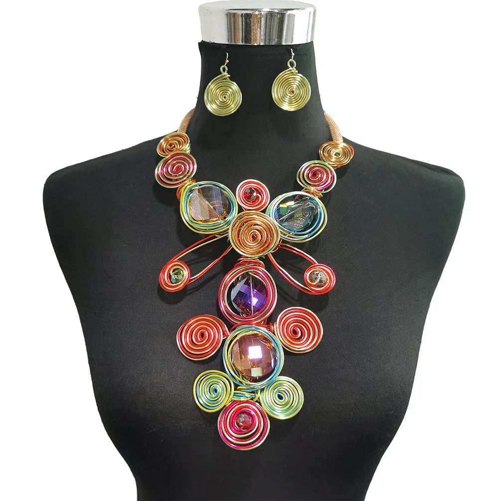 MANILAI Luxury Handmade Statement Jewelry Set For Women Wedding Fashion Crystal Metal Earrings Pendant Necklaces Sets Multicolor