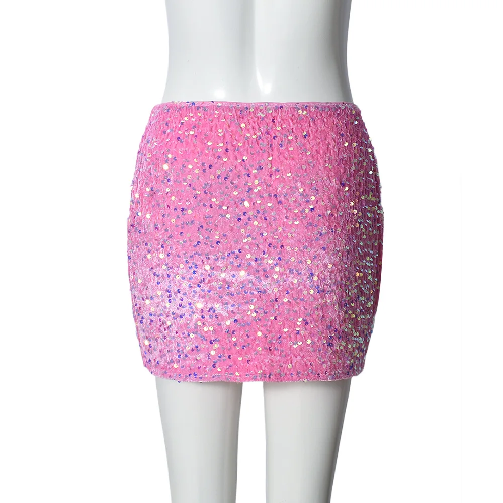 New Fashion Pink Bead Sequined Short Skirt Sexy Women Bodycon Midi Skirt Female