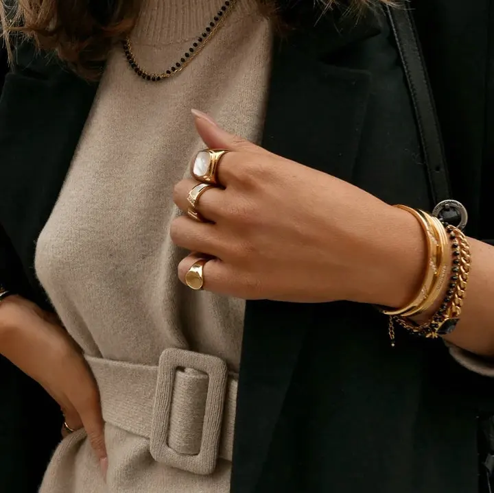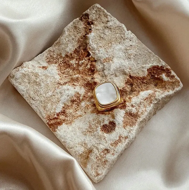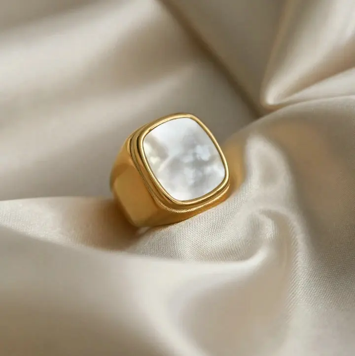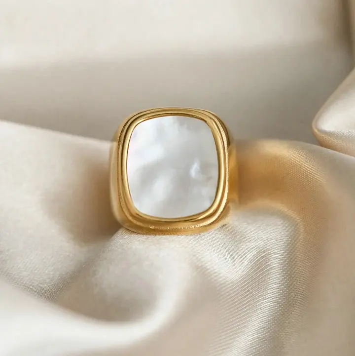 Stainless Steel White Shell Rings for Women Braided Twisted Signet Chunky Dome Ring Stacking Band Jewelry Statement Ring Jewelry