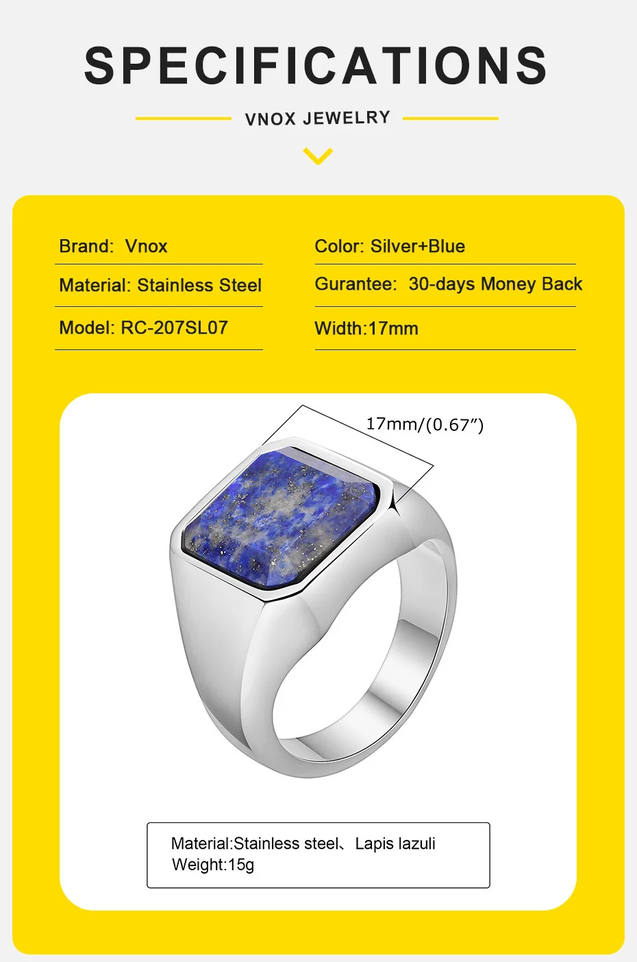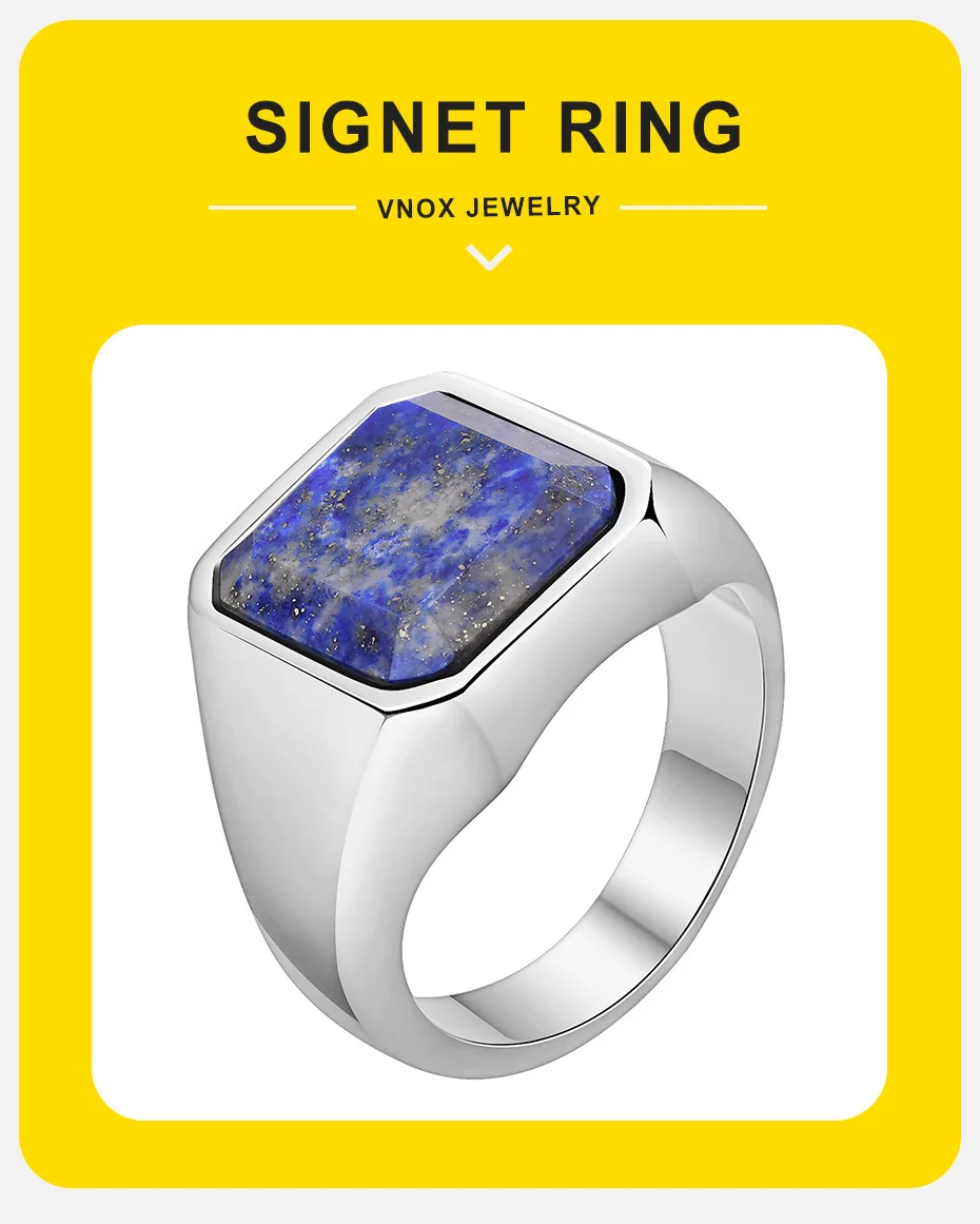 Vnox Stylish Square Natural Stone Signet Rings for Men, Stainless Steel Metal Finger Ring Party Gift Jewelry