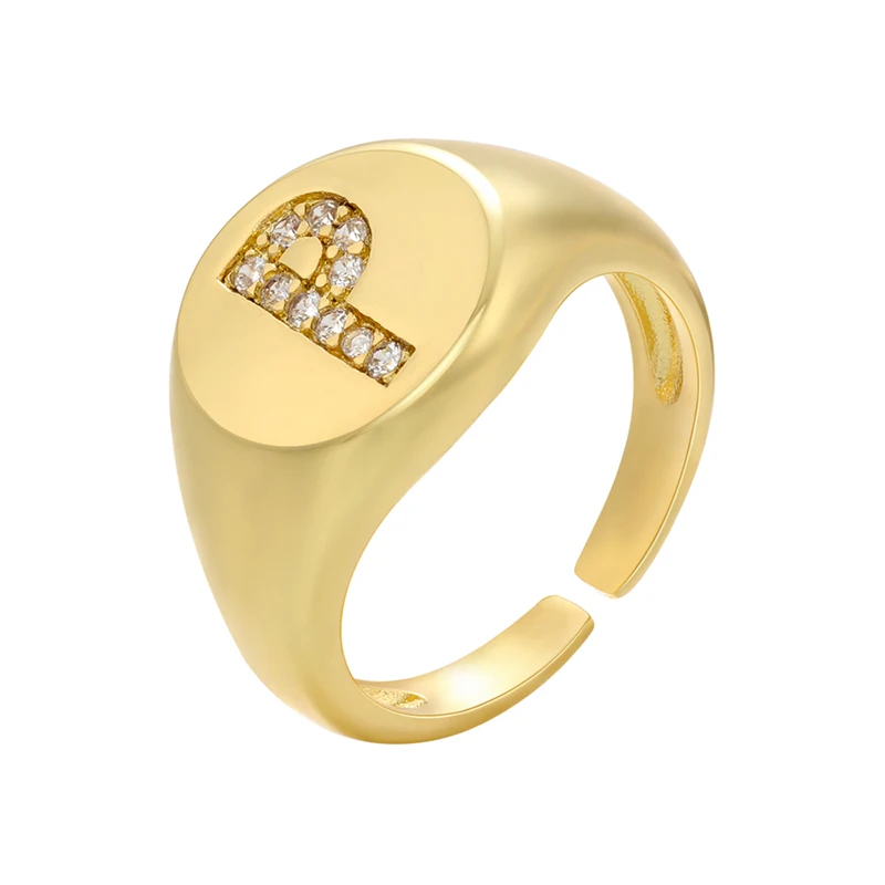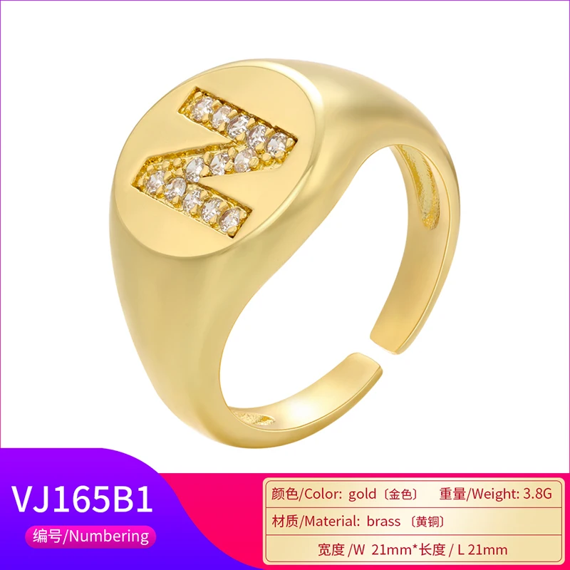 ZHUKOU A-Z Initial Signet Rings For Women Men Statement Ring 26 letters women rings crystal adjustable rings wholesale VJ165